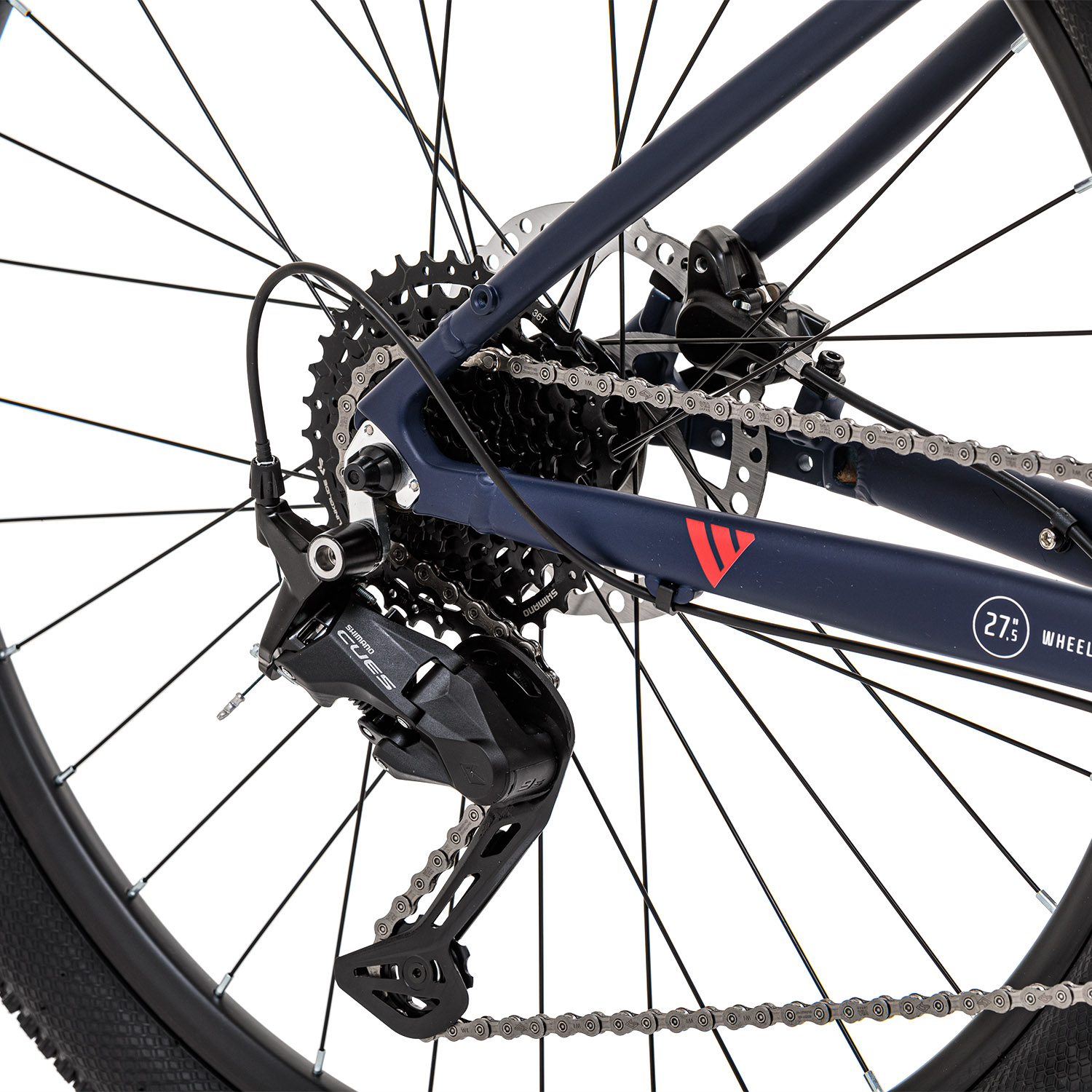 - Надежная 9-скоростная трансмиссия Shimano CUES. Задний переключатель имеет низкопрофильную конструкцию, цепь не задевает перо рамы в сложных условиях езды, работает без шума.